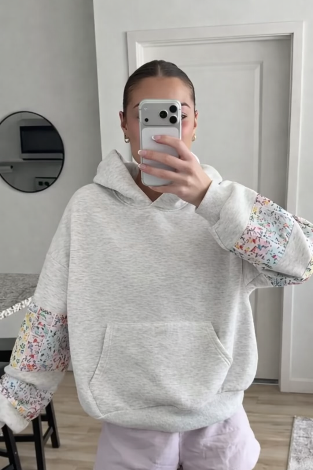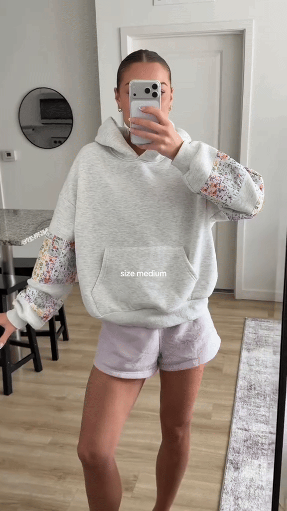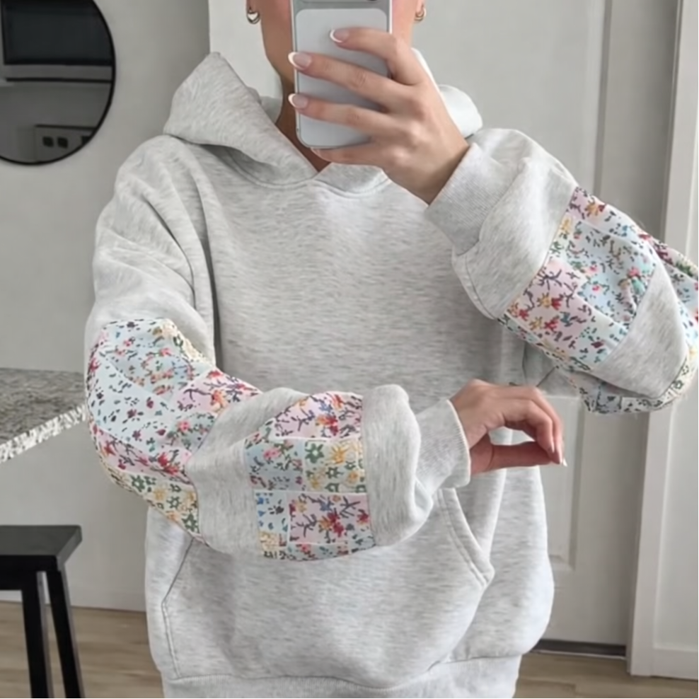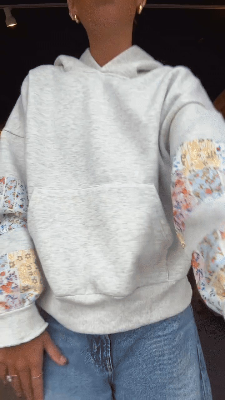 Floral sleeve accents bring a gentle pop of detail, giving this hoodie a unique and charming look compared to basic styles. Whether you’re heading out for errands or enjoying a relaxed day indoors, this hoodie offers a stylish yet comfortable option that fits seamlessly into your casual wardrobe.